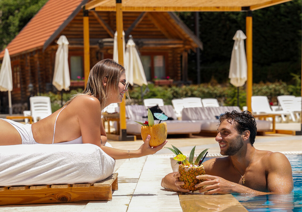 An outdoor seasonal pool is available for guests to benefit from and lounge under the summer’s blue sky and warming sun. Whether you are staying with friends, family, loved ones or simply by yourself, visit our pool and lounge on our sun chairs while sipping on your favorite drinks from our pool bar’s wide selection. Take a dip in the clear water and relax.